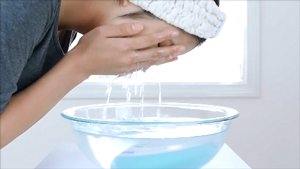 浸透性の高いマルーンの水素水を両手にたっぷりと取り、