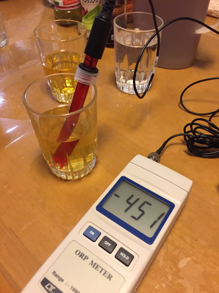 下記の写真はマイナス451(-451mv) 超高濃度水素茶出来上がり。