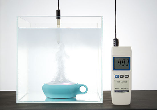 酸化したものを元に戻す「還元力」は-493mV と高レベルの数値を 示しています。 ※ORP メーターで酸化還元電位を測定 |