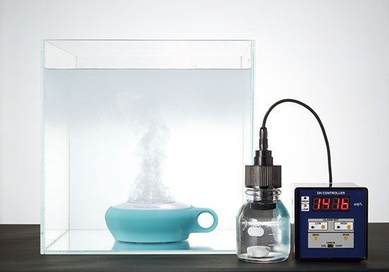 | 「水素量」は1,416ppb です。 (水素発生リング直上部にて測定) ※水素メーターで溶存水素量を測定 |