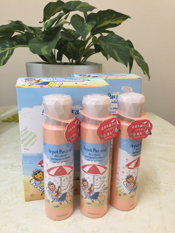 「アクアパラソル」 スプレータイプのUVカットです。 髪の毛~お顔~手足 全身どこでも UV対策出来ます。 白浮きしませんし、パウダータイプなのでサラサラの使用感です。 香りも微香性で 学生さんでも使用できるレベルです。 紫外線をブロックするだけではなくて、お肌に有害といわれている近赤外線までカットします。 1本100g 1,800円(税別) 詳しくは、下記のパンフレットでご覧くださいね。